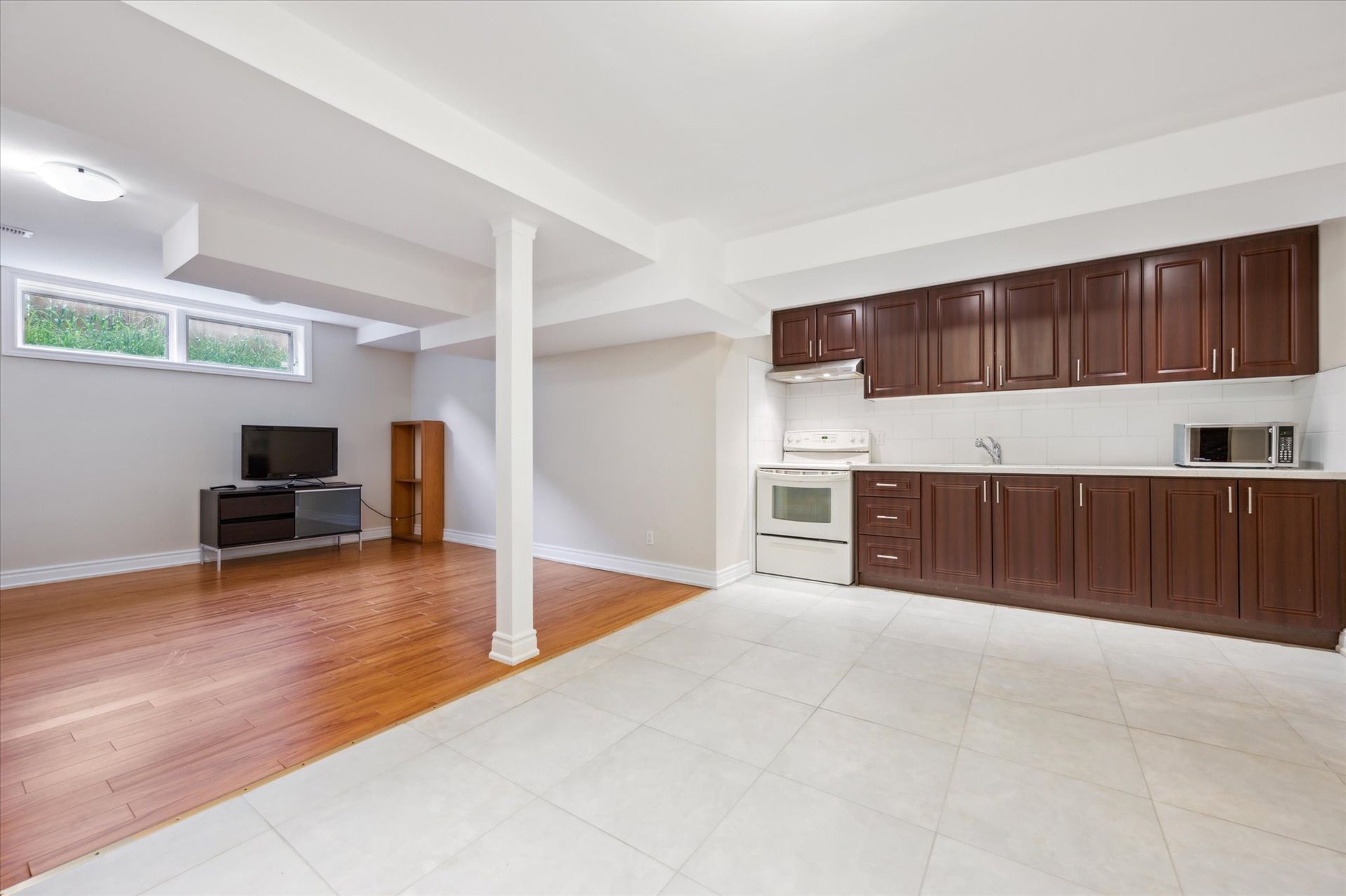 Finished Hardwood and Tile Flooring Throughout