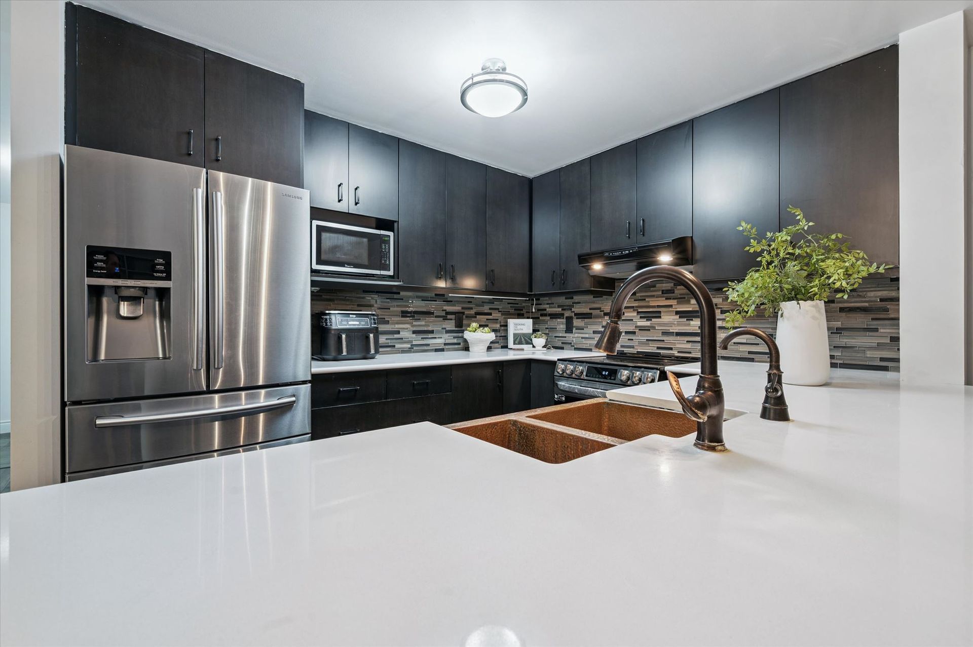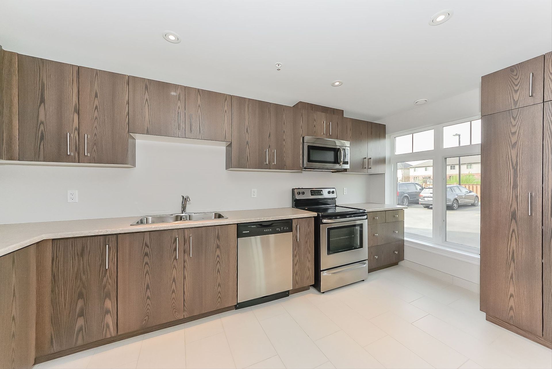 Modern kitchen with quartz & stainless steel